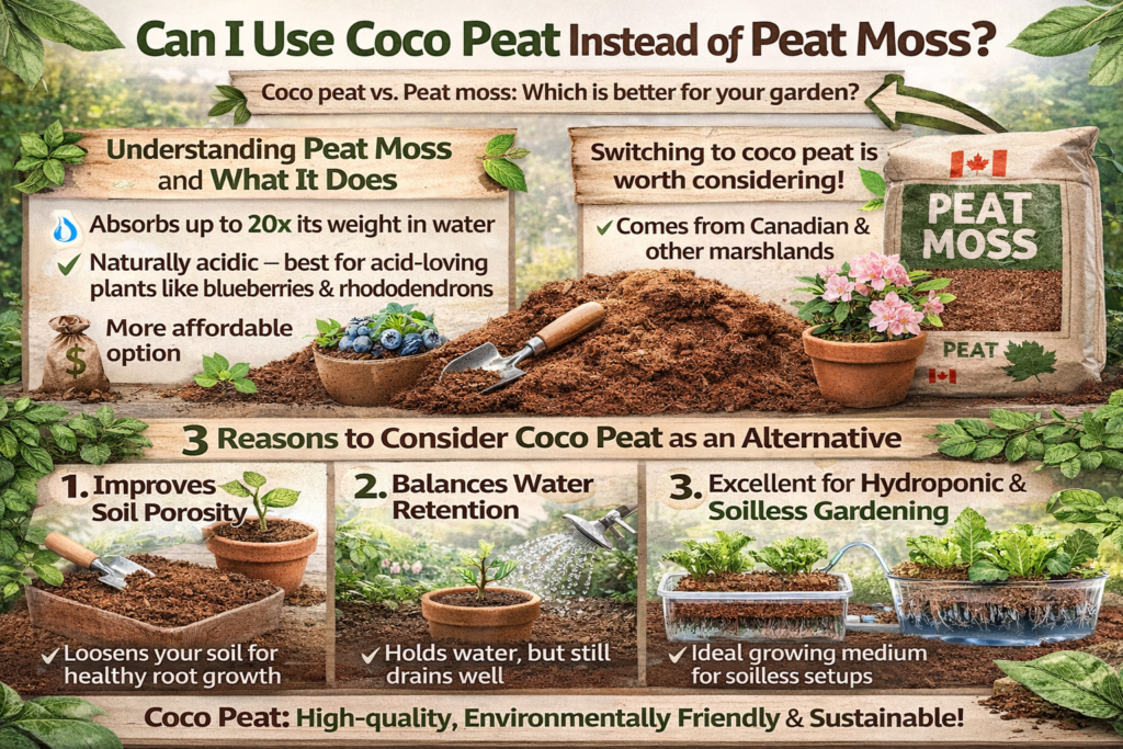 If you’ve been gardening for a while, you’ve probably come across both coco peat and peat moss as popular growing mediums. But when it comes to choosing between the two, many gardeners ask the same question — can I use coco peat instead of peat moss? The short answer is yes, but understanding the differences between them will help you make a smarter decision for your garden. Let’s break it down.